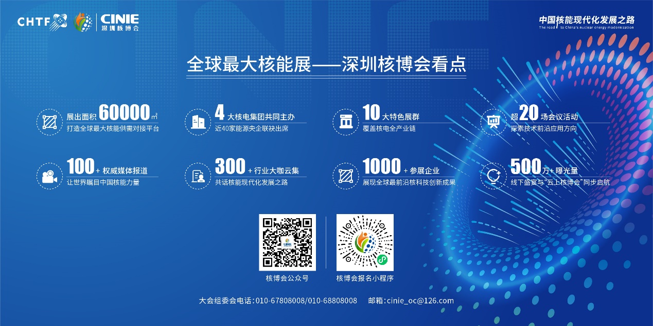 本届深圳核博会展出面积达60,000平方米,超1000家海内外参展商覆盖全球最前沿的核科技创新成果以及完整的核电产业链。大会同期还有超20场产业、应用、国际及学术论坛,涵盖聚变研究、先进核能、先进核材料、核燃料自主创新、核环保、核技术应用、核电产业链、核电智慧运行、维护与延寿、数字化仪控、核电装备、核电先进建造、核能综合利用、生态核电、冷源安全等诸多方面,为我国核能产业加快自主化发展和“走出去”下好“先手棋”,为全球核产业积极有序健康发展庚续新动能。