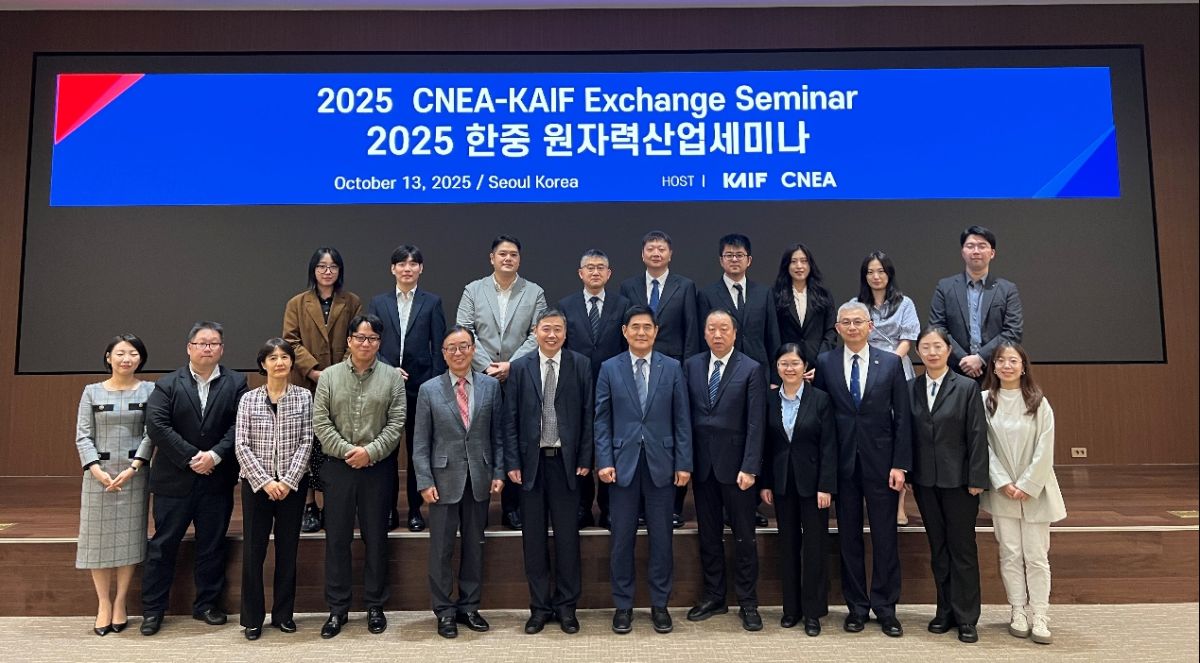 2025年10月13日,由中国核能行业协会(CNEA)和韩国原子力产业协会(KAIF)共同主办的首届中韩核能技术交流研讨会在韩国首尔顺利召开。CNEA秘书长郭利民和KAIF执行副理事长卢百植出席会议并致辞。中韩双方围绕核电装备制造技术创新及核技术在医学领域的应用展开交流与探讨,为中韩两国核领域未来合作提供了新视角。