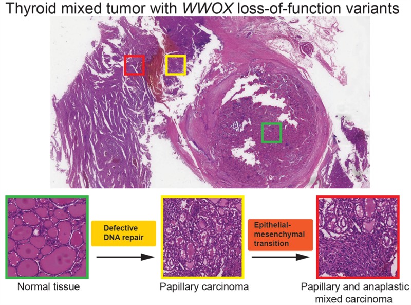 近日,中国科学院合肥物质科学研究院健康与医学技术研究所/合肥肿瘤医院,联合中国科学技术大学附属第一医院,发现WWOX基因胚系失活突变促进甲状腺癌发生发展。该研究提供了功能机制证据,在机制上连通了WWOX遗传变异与甲状腺癌的临床进程。