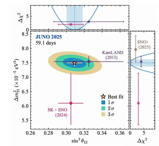 这两个振荡参数最初是通过太阳中微子所测定,但也可以通过反应堆中微子精确测定。此前这两种方法对质量平方差的测量结果有大约1.5倍标准偏差的不一致,被称为“太阳中微子偏差”,暗示着可能有新物理。此次江门中微子实验通过反应堆中微子证实了这个偏差。未来,仅由JUNO实验就能通过同时测量太阳中微子和反应堆中微子来证实或证伪该偏差。相关论文已于11月18日提交期刊并在预印本网站arXiv发布。