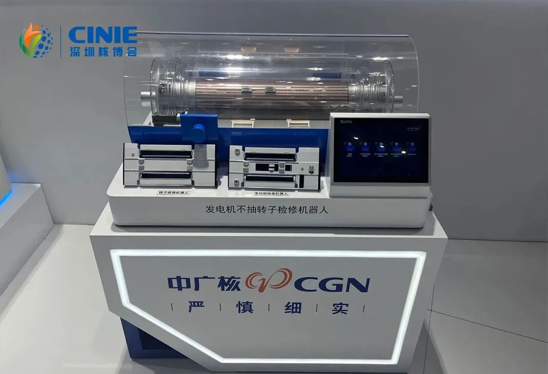中广核运营公司携四项科创产品参加展会,展示了公司在核电运维领域的创新成果和技术实力。其中,公司发电机首席技师王建涛携团队研发的发电机不抽转子检修机器人在央视新闻亮相。