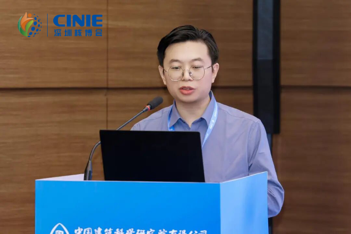 中建研科技建筑工业化事业部副总经理、建筑工业化研究中心副主任周剑作《新型工业化建造技术研究及其在核工程中的应用探讨》的报告。