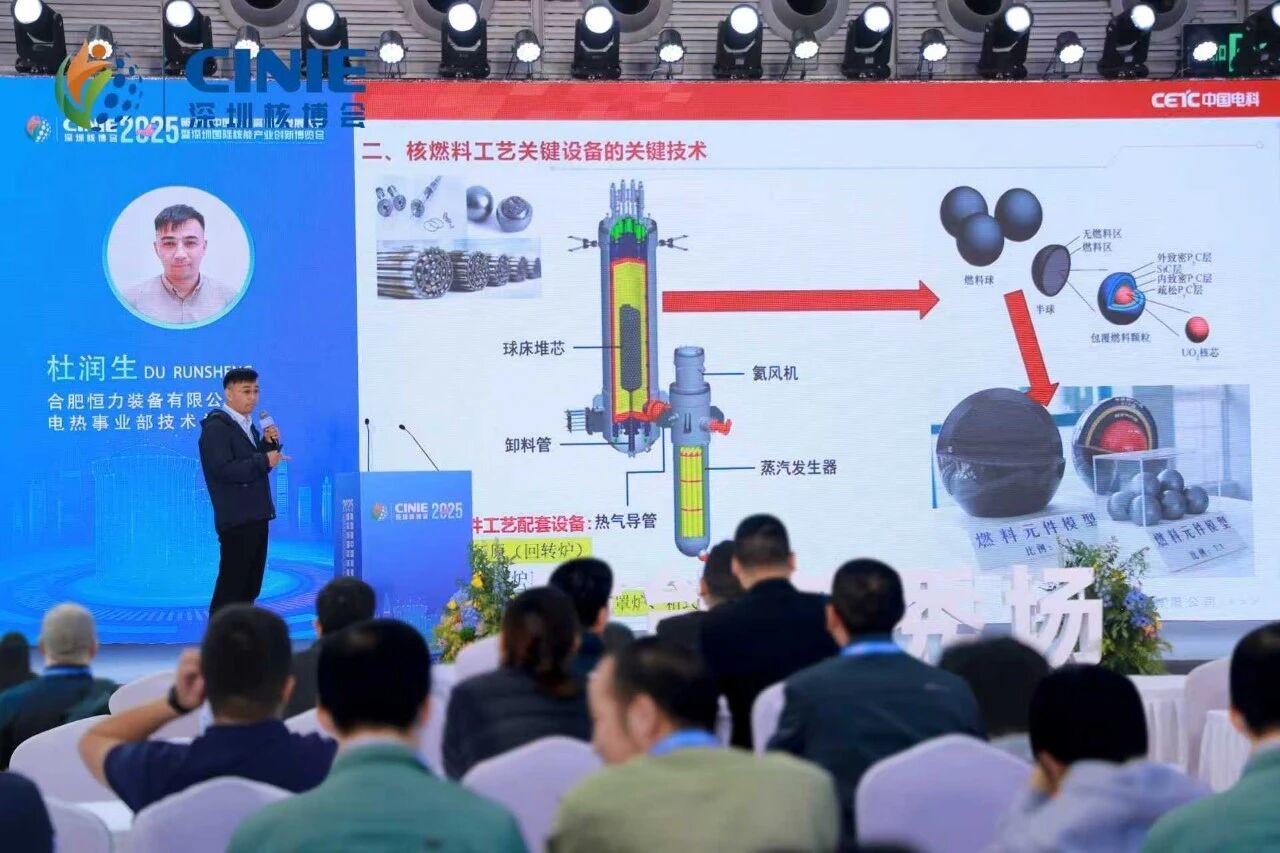 合肥恒力的专家团队积极参与了核博会期间的各类论坛、研讨会,与行业内的顶尖专家、学者共同探讨核能产业的发展趋势与挑战。在 “核能技术创新与未来发展” 论坛上,合肥恒力电热事业部技术总监杜润生发表了精彩演讲,分享了公司在核燃料设备智能化升级、核燃料设备高可靠等方面的最新研究成果与实践经验。