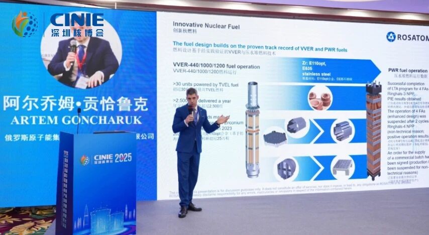 俄原子东亚公司区域中心总经理Artem Goncharuk对此评价道:"通讨我们的展位中国会作补伴对饿罗斯国家原子能公司在各个领域的解决方案,包括燃料领域和多用途快中子研究堆项目,都表现出浓厚兴趣。我们知道在中国有句俗语'事实胜于雄辩'。通过展示我们的技术,我们始终致力于让合作伙伴能够亲自评估各项解决方案的参数,从而确信其卓越效能。"