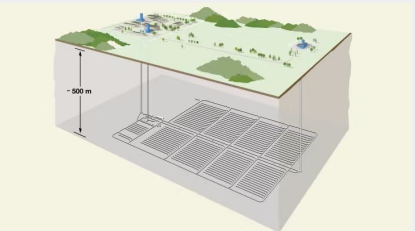 深层地质处置库,是指为永久处置高放废物而建设的高度工程化的地下仓库及隧道网络,从而确保到达地表环境的辐射水平不产生危害。深层地质处置库必须位于足够深度且地质条件合适的区域,确保数万年后仍能安全隔离放射性废物。