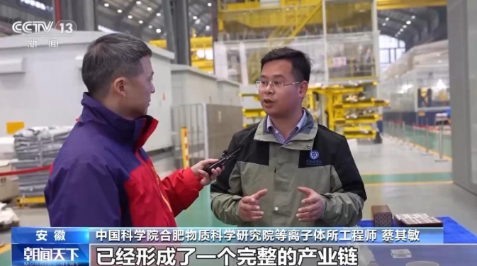 中国科学院合肥物质科学研究院等离子体所工程师 蔡其敏:在研发的过程中,我们与国内上下游的产业,已经形成了一个完整的产业链。目前这些超导技术已经应用到医学领域、交通领域、环保领域等等这些领域都起到一个很好的作用,所以目前我们也在把这些大科学工程技术,结合社会民生使用,大量成果转化,我们称之为“沿途下蛋”。