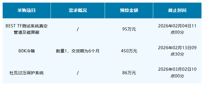 等离子体所、聚变新能近期采购项目发布