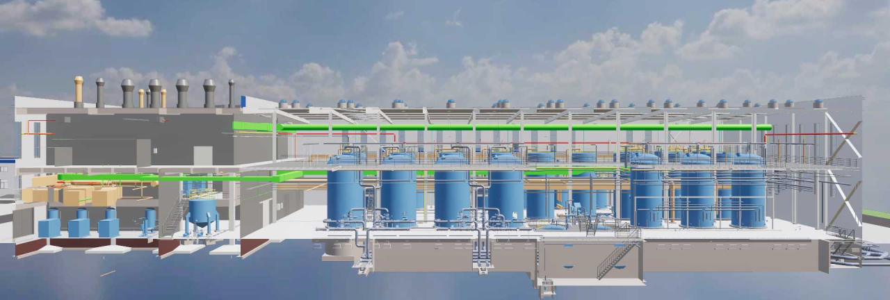 天然铀产能项目存在显著的多专业交叉特点,单一软件工具无法满足全专业设计需求;不同软件之间的数据壁垒,更是阻碍了真正意义上的协同设计。中核矿业科技创新推行“实时协同+定时协同”双轨制协同流程,自主研发PIM-FINE(Plant+BIM)软件实现跨平台模型数据双向贯通;为达到各专业设计精度和效果的最优,项目采用全专业跨平台协同设计,同一设计工具内部支持各专业实时协同,在项目的30%、60%、90%关键节点定时协同,组织跨工具协同评审。这一模式推动各专业之间从“信息孤岛”转变为“共享平台”,彻底改变传统“阶段串行”的工作模式,协同效率显著提升。