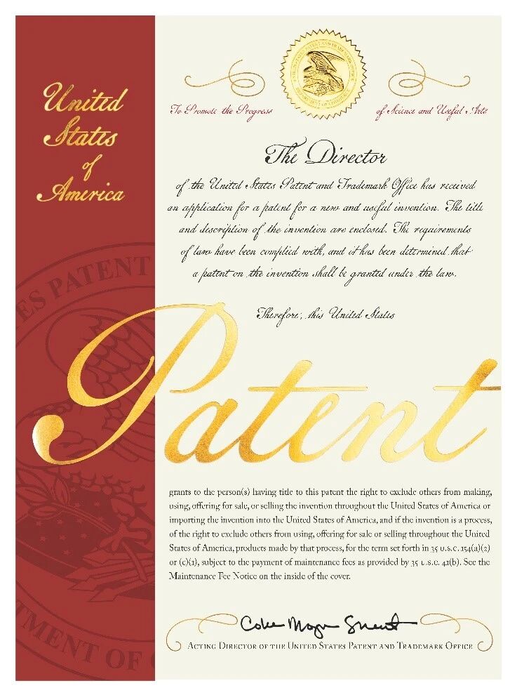 美国授权专利证书