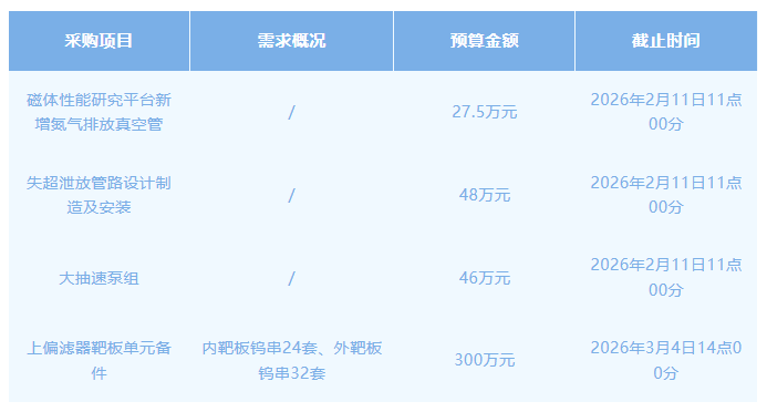 等离子体所近期采购项目发布