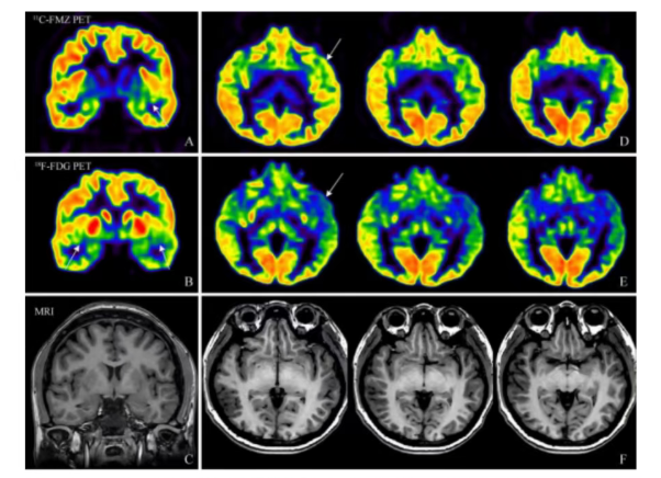 研究团队对17名药物难治性癫痫患者进行了回顾性分析。这些患者在术前均接受了¹¹C-FMZ和¹⁸F-FDG PET/MR一体化扫描。结果显示,两种技术优势互补:¹⁸F-FDG PET在判断致痫灶位于大脑哪一侧时表现出高准确性(94.1%),并能有效提示多发病灶的存在;而¹¹C-FMZ PET在精确定位病灶具体位置方面表现更优,准确率达88.2%,尤其对于海马硬化等常见单一病灶,其识别具有高度特异性,避免了传统方法定位范围过大的问题。