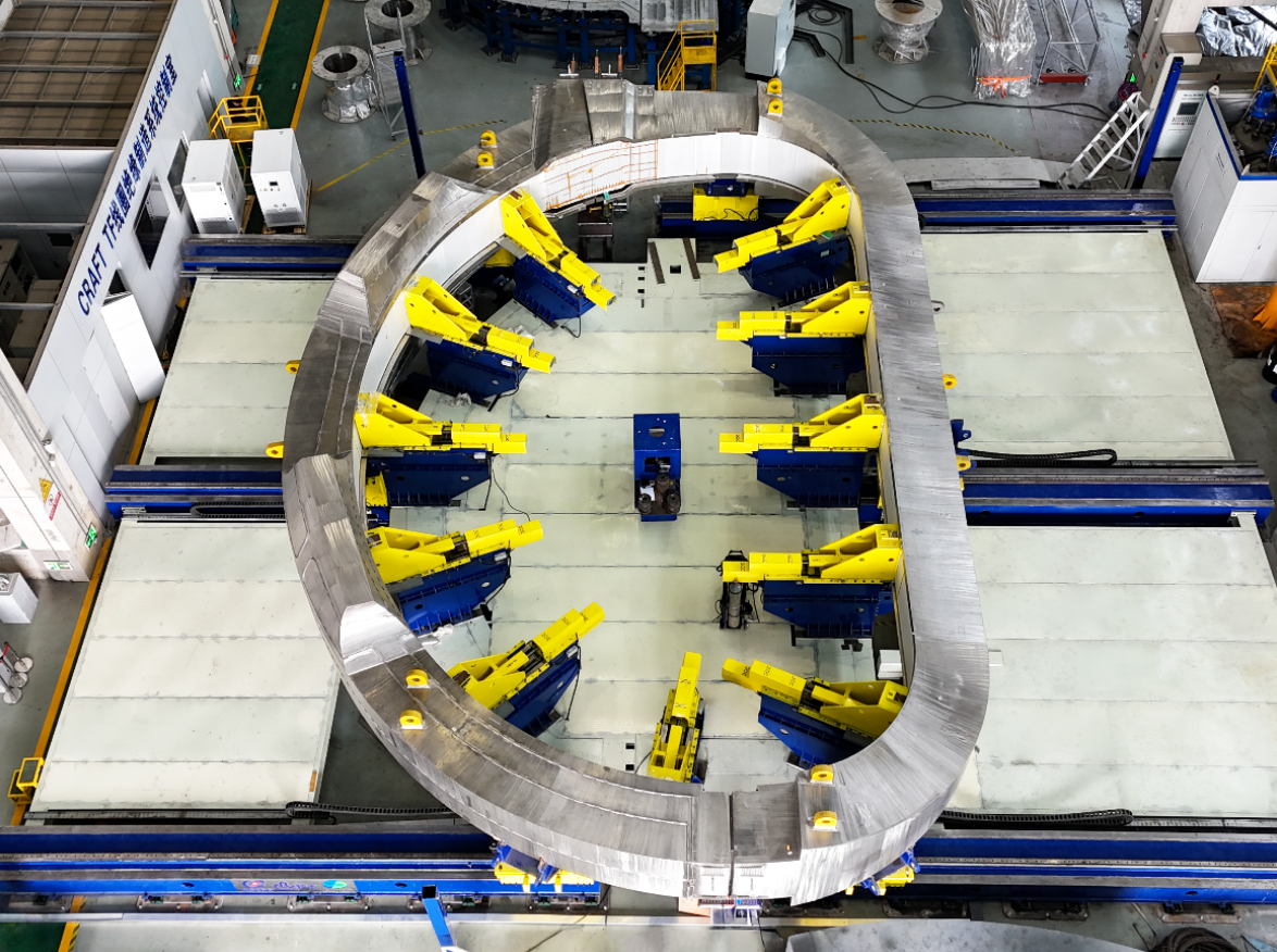 为将240吨的TF绕组(WP)精准装入共计317吨的线圈盒部件(AU与BU)内,项目组攻克了包括“基于精密测量的虚拟装配技术”在内的多项工艺难题,并采用了水平入盒方案。最终,TF绕组借助特制低摩擦滑块,成功实现亚毫米级精度的就位。此次装配为这一核心聚变装置部件提供了至关重要的结构支撑,是迈向实现可控核聚变能源目标的重要一步。