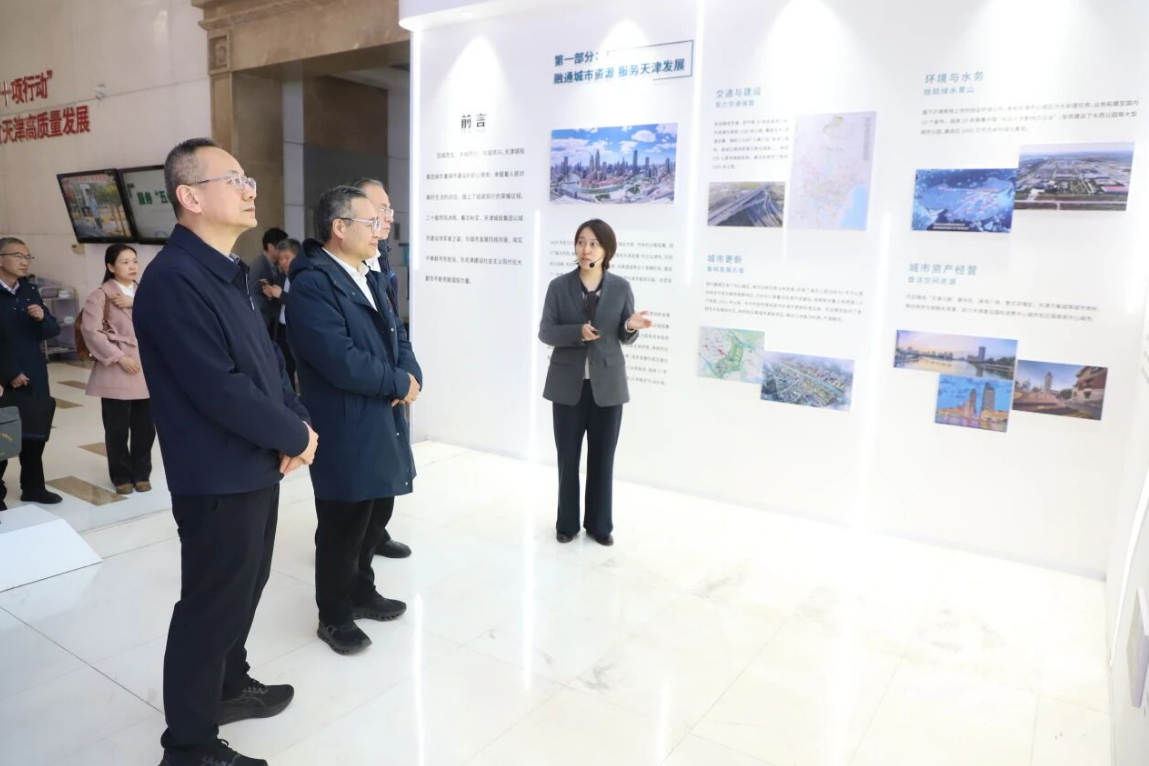 期间,鄢斌、官博胜一行参观了天津城投集团“城就津彩”主题展览。
