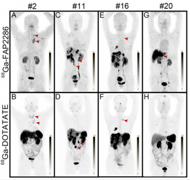 治疗成功的第一步是精准识别适合的患者。研究采用了一种创新的筛选方法:在治疗前,患者需接受两种不同的PET/CT检查。一种使用[⁶⁸Ga]Ga-DOTATATE,用于检测肿瘤细胞表面的生长抑素受体(SSTR);另一种使用[⁶⁸Ga]Ga-FAP2286,用于探测肿瘤周围的支持性微环境(成纤维细胞活化蛋白,FAP)。通过这种“双管齐下”的影像检查,医生能更全面地评估肿瘤的分子特征,筛选出那些肿瘤病灶能同时被两种探针识别或互补识别的患者,从而确保后续治疗能最大限度地覆盖所有病灶。