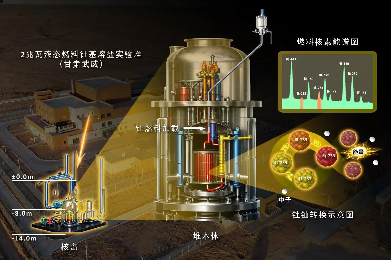 熔盐堆是以高温熔盐作为冷却剂的第四代先进核能系统,具有固有安全、无水冷却、常压工作和高温输出等优点,是国际公认最适配钍资源核能利用的堆型。