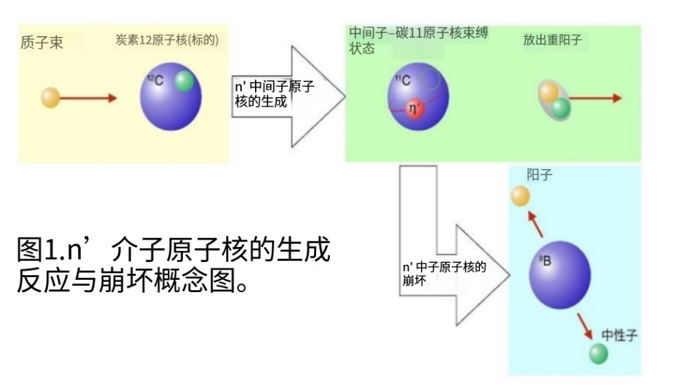 研究小组利用德国重离子研究中心的散裂反应堆(FRS)开展η′介子核产生实验。将加速到光速约96%的高能质子与碳 - 12核靶反应,质子与碳核中的中子反应生成氘核并喷射到靶前,此过程中质子动能激发碳 - 11核产生η′介子,η′介子与碳 - 11核以一定概率结合形成η′介子核。