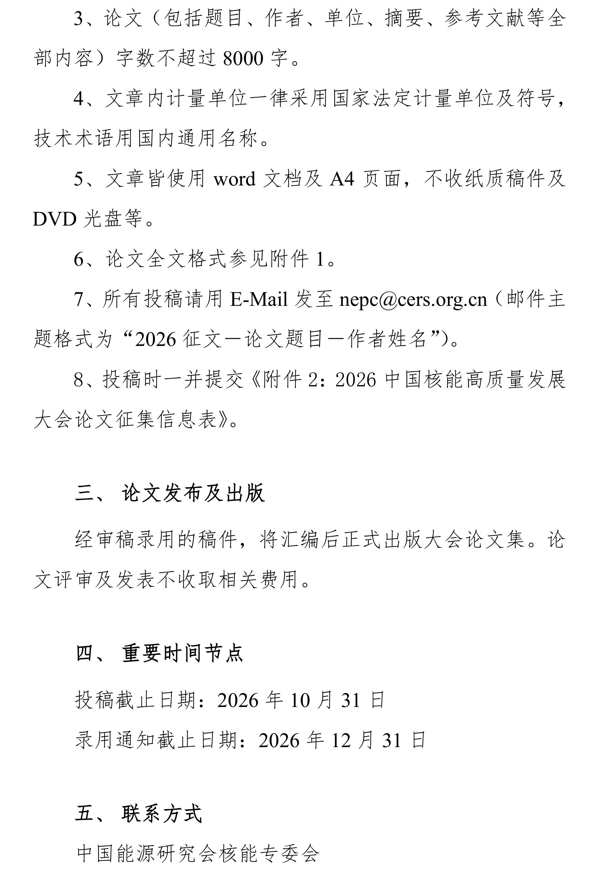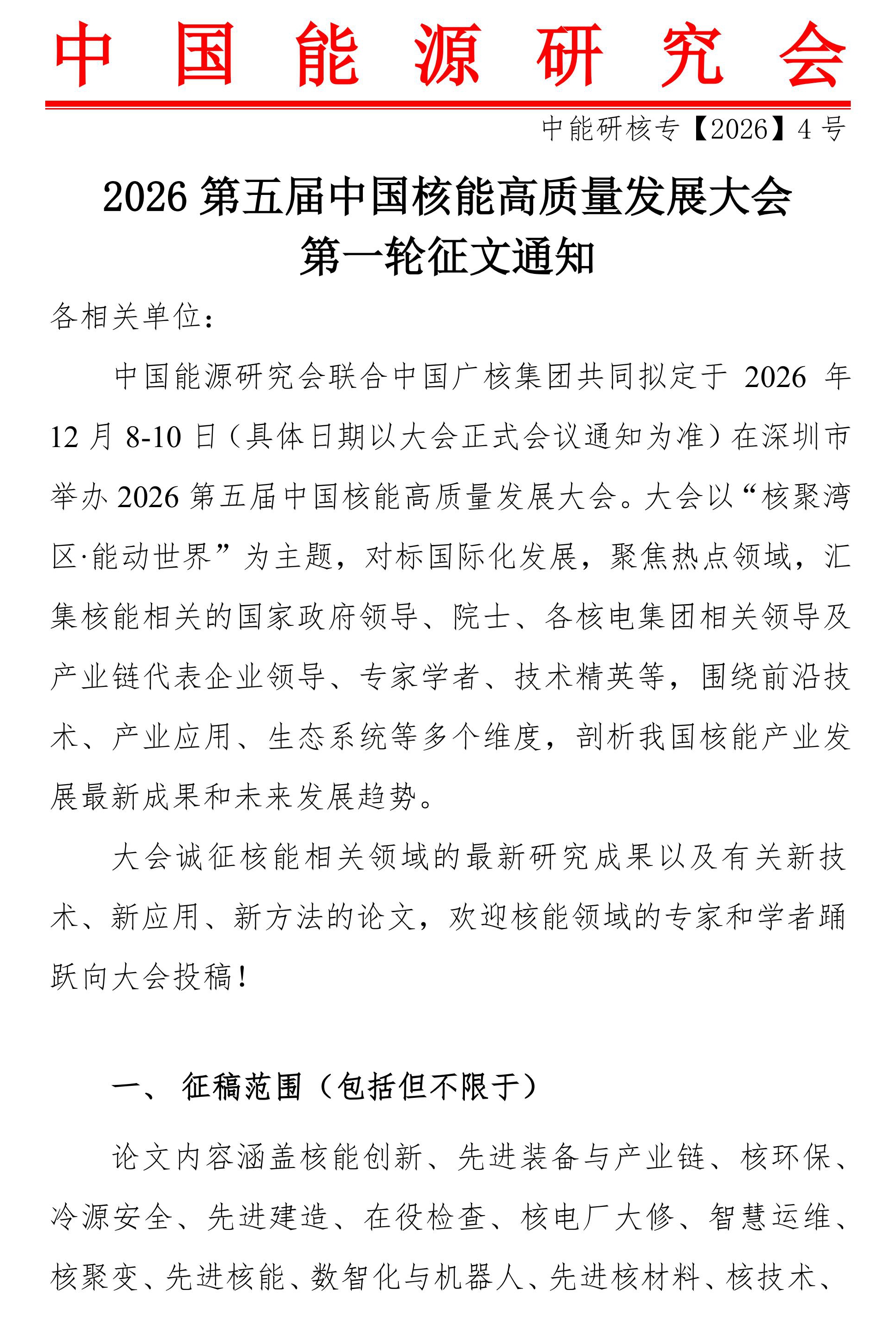 2026第五届中国核能高质量发展大会第一轮征文通知